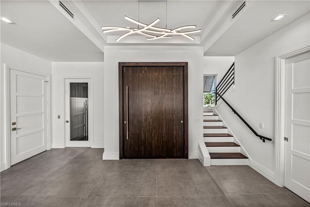 Just as you cross over the Marco Island bridge, on the left, you will see your STUNNING NEWLY BUILT (LATE 2022), FULLY FURNISHED CUSTOM HOME with INCREDIBLE WATER VIEWS & QUICK BOATING ACCESS TO THE GULF! Located just across from the Marco Island Yacht Club where you can keep your larger yacht, this Coastal Contemporary home was designed to bring the outdoors in & to have divine wide water views within each living space. The entire main level free-flows seamlessly to the pool deck & outdoor kitchen area creating the perfect open-air entertaining spaces. The open concept kitchen features a hidden Butler's Pantry, an Italian hood, a Fusion quartzite island and white Pompei quartz back wall countertops. You will find 2 ensuites on the lower level each with designer accent lighting, large closets & floating vanities. Upstairs is your full span owner's suite complete with an elevator entry, sliding doors to the balcony, drop down TV & a kitchenette. The dual vanity BR has a shower & soaking tub, entry to the large walk-in closet & there is a separated water room for privacy. Venture back down to your gorgeous glass tiled, saltwater pool to watch the sunset or share a glass of wine by your fire pit. If you enjoy an incredible water view filled with wildlife, this is truly your MOVE-IN-READY DREAM HOME right in the heart of Marco!